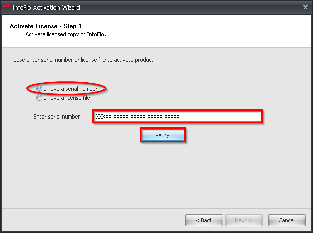 'I have serial number'option is selected by default. - Enter your serial number in the text box to the right of