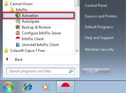 'Start'->'All Programs'->'Carmel Vision'->'InfoFlo'->'Activation'