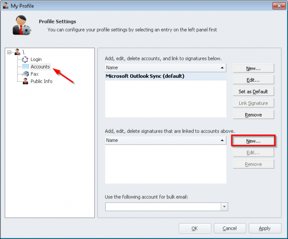 'Accounts'and click'New...'(the second one next to the signatures.) - Give your signature a name such as