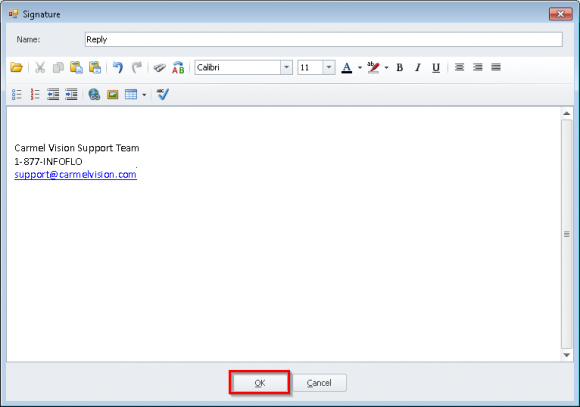 "Default"or"Reply" - Enter or paste your signature in the editor below and click