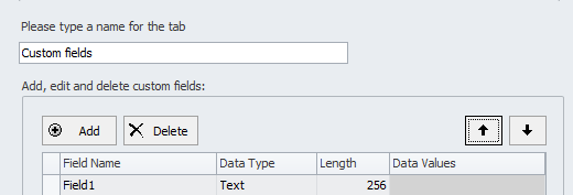 'Project'to view and edit the Project Custom Fields. - To change the order of the Custom Fields as it appears in the application, select the field you would like move and click the Up and Down Arrows.