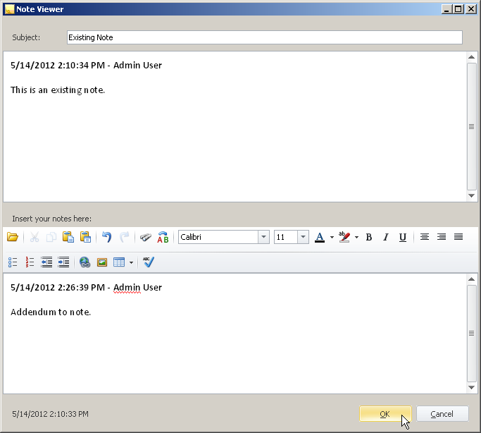 'Notes Tab'at the bottom of the Summary View to view the list of notes. - Double click the existing note.