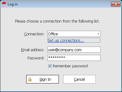 'Set up connections...' - Here you can configure the necessary details used to connect to your InfoFlo Server. Most of these can be left as default but the most important details are Username (email), Password and Server IP.