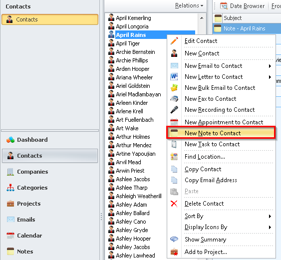 To see a video demonstration of this feature, please visit How do I Create a New Note for a Contact?.