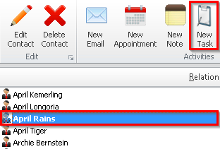 2. Select the contact you would like to create a new task for.
