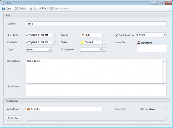 12. This is what the new task window may look like after some of the fields are filled in.