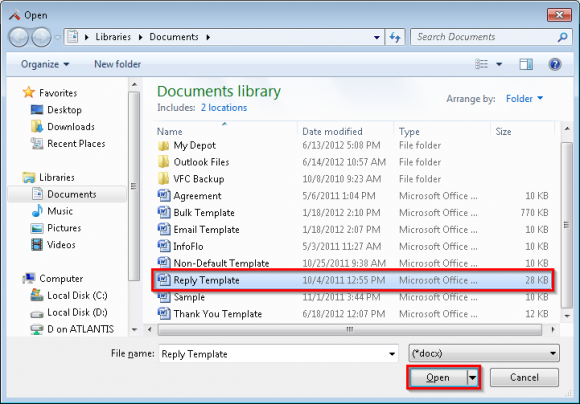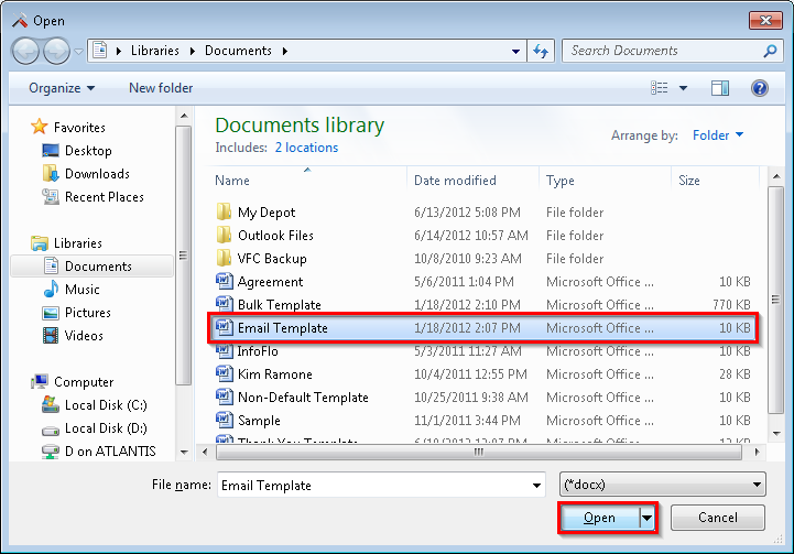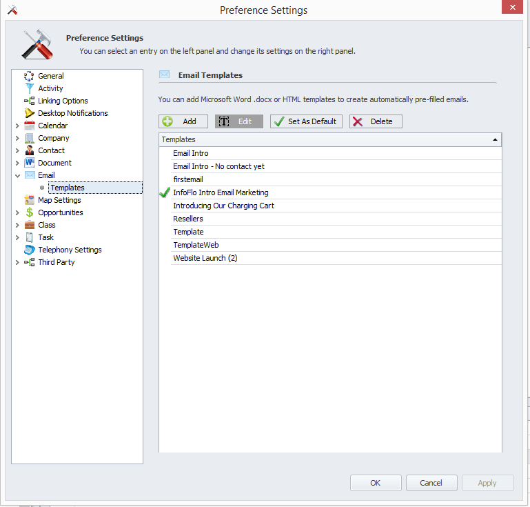 'Email'from the left navigation tree, select the'Templates'tab and click'Add'to add a new template. - Select the Word Document that you would like to use as your email template and click