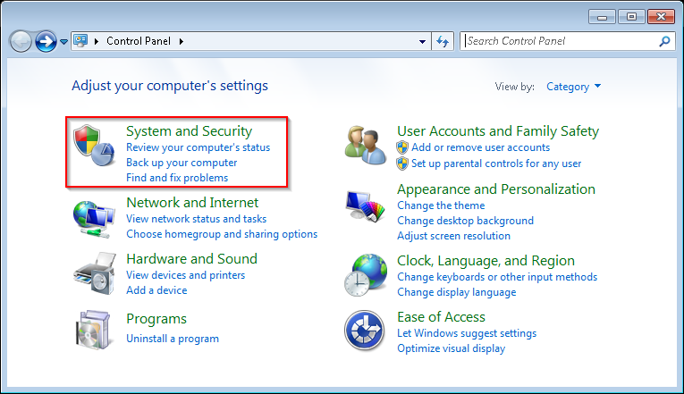 - Click System and Security (if applicable).