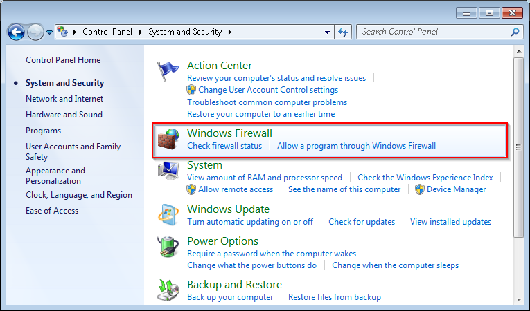- Click ‘Windows Firewall’.