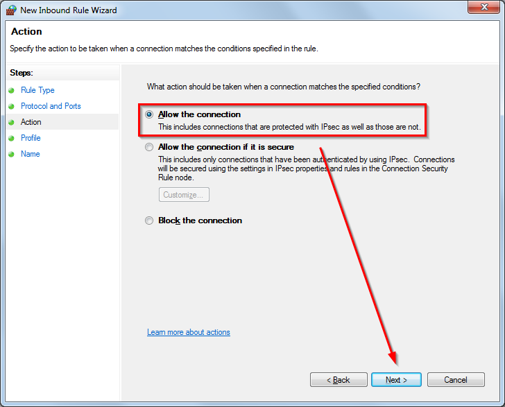 - Select ‘Allow the connection’. Click Next.