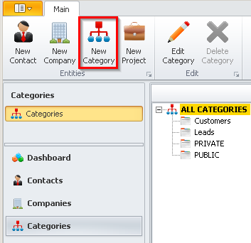 'New Category'located in the Ribbon Toolbar. - Enter a name for the category you would like to create.