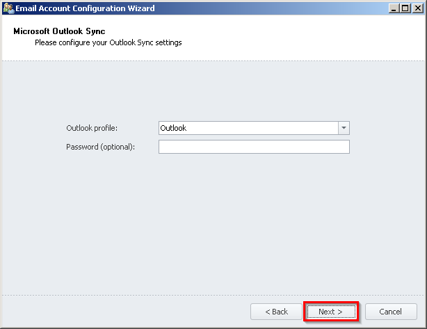 'Finish'to complete your Outlook Sync configuration.