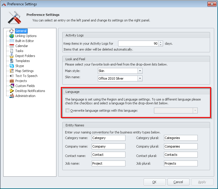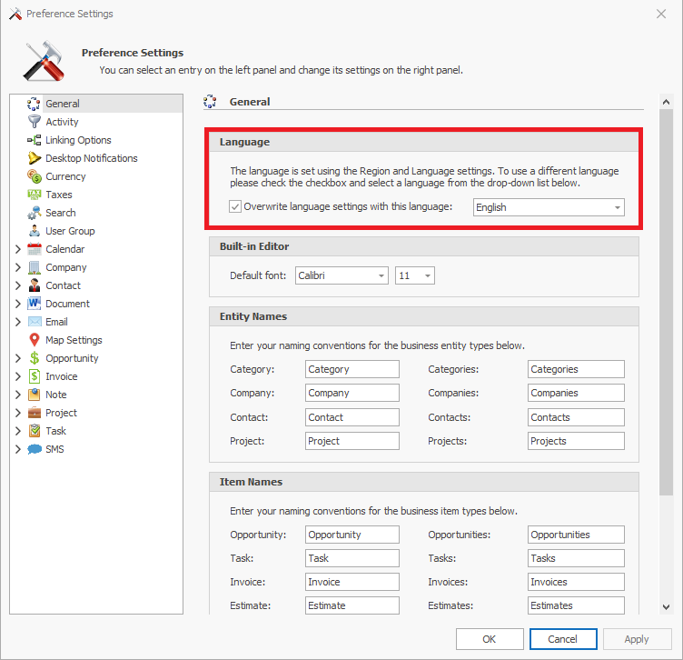 'Apply'to apply changes now or'OK'to confirm the changes and close the Preference Settings window.