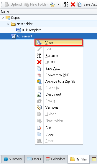 'View'or by double clicking the file. - The current version of the file will be opened with the default application.