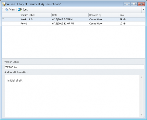 'View'button (The native file viewer will be launched). - You can revert back to a previous version by selecting a previous version and selecting the Sync button.
