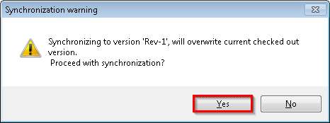 'OK'when prompted'Version synchronization completed successfully!'. - Notice that the star indicator has moved from the previous latest version to the current latest version of the file. Click the red