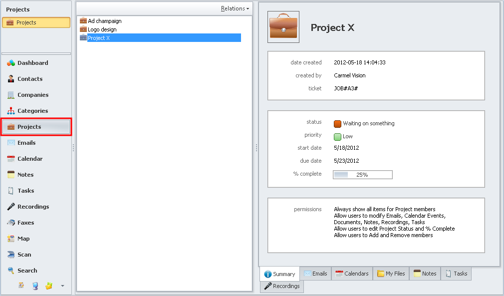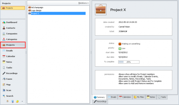 - A list of projects can be retrieved by clicking ‘Projects’ from the left menu. Again, all the details are shown in the summary tab when a project is selected.