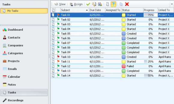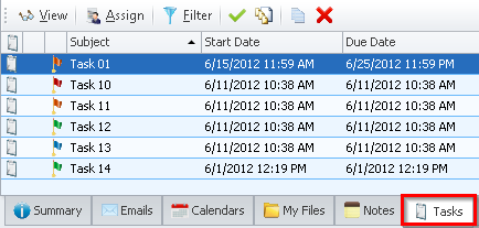 View all tasks associated to a contact by viewing the 'Tasks' tab of a specific contact.