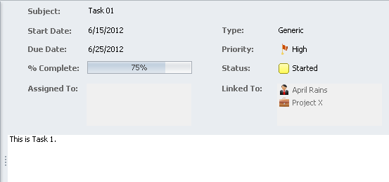 'Tasks'tab to view all tasks linked to the contact.
