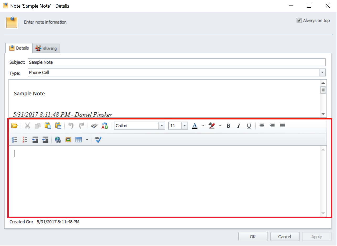 If the function is disabled, the user can only add new information which, by default, will be placed at the bottom of the note
