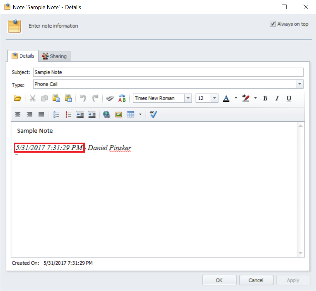This function will automatically include a time stamp in each note that you create