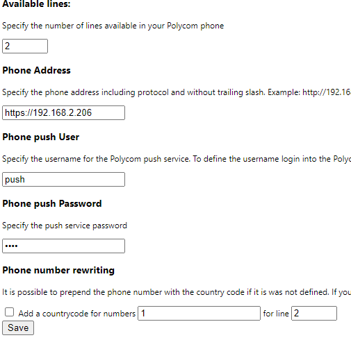 - Phone number rewriting – uncheck Add country code for numbers